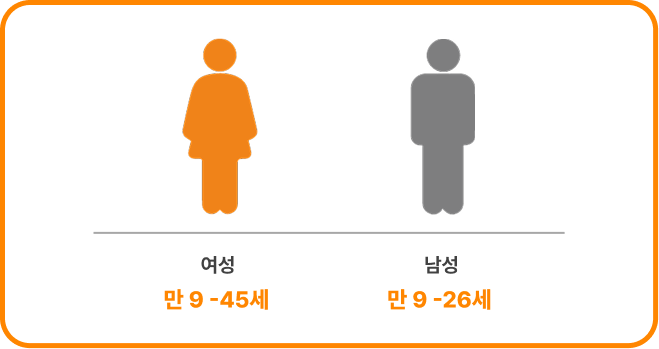 성인(만 15-45세 여성 / 만 15-26세 남성)