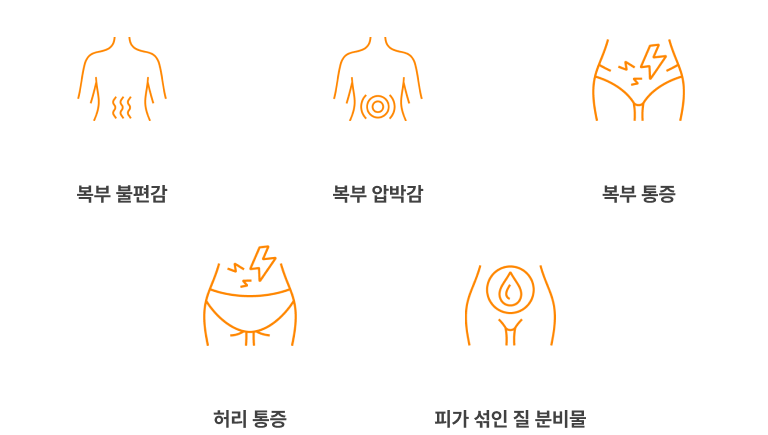 아랫배 통증과 함께 질에서 분비물이나 출혈이