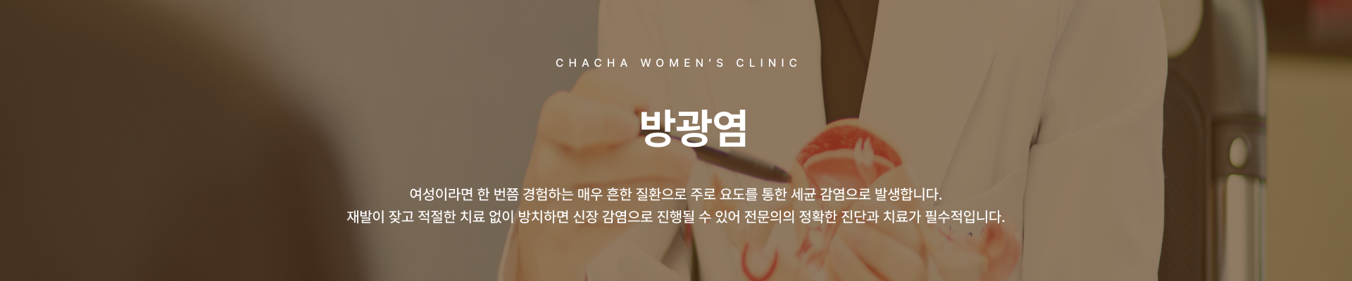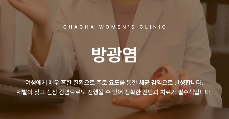 차차여성의원에서는 소변 검사를 통해 감염 여부와 출혈 상태, 세균 서식 여부를 정확히 파악한 후 적절한 치료를 진행하며 크랜베리 영양제를 통해 재발이 잦은 방광염의 예방까지 세심하게 신경 쓰고 있습니다.