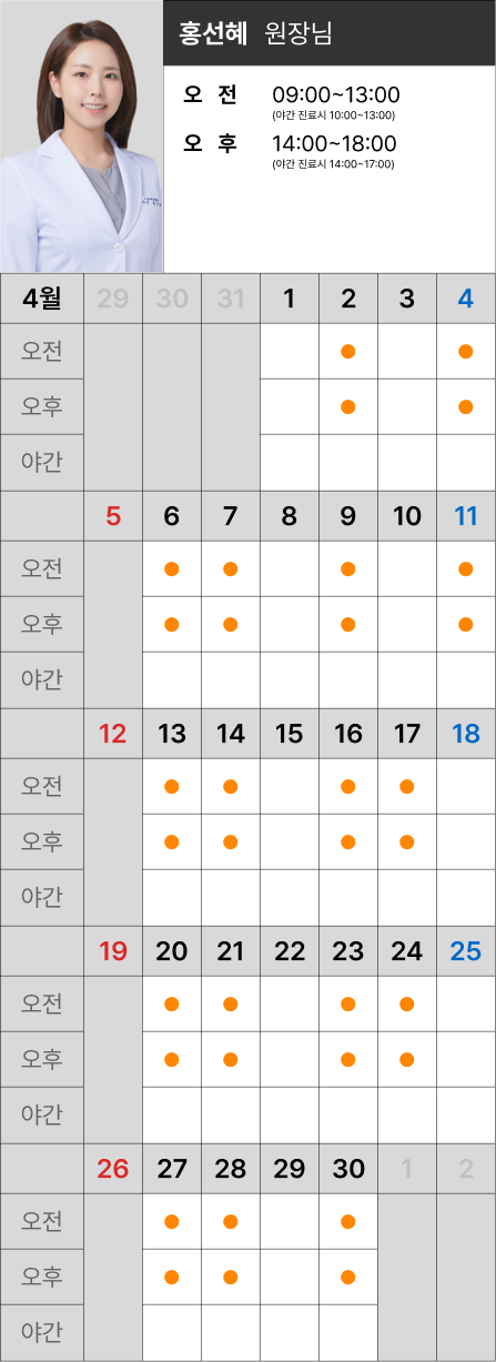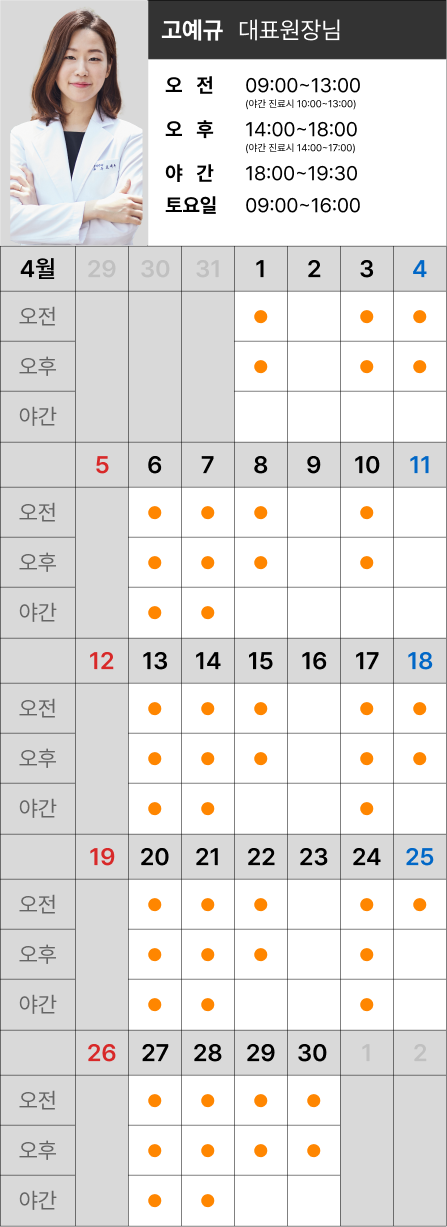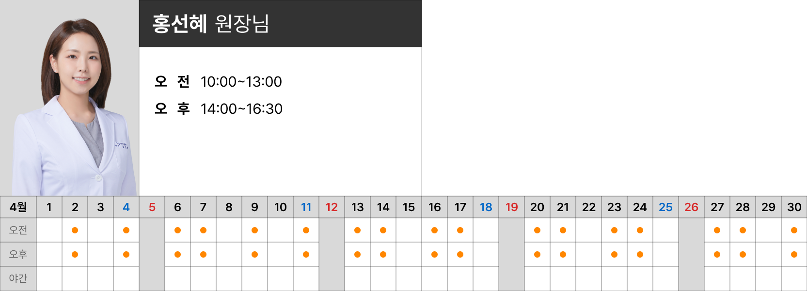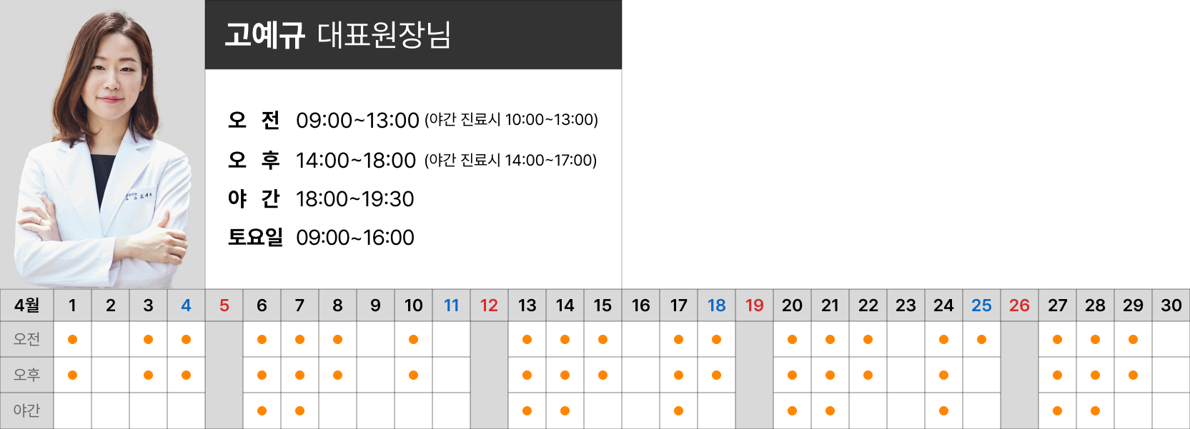 4월 18일 토요일 : 점심시간 없이 오후 4시까지 진료