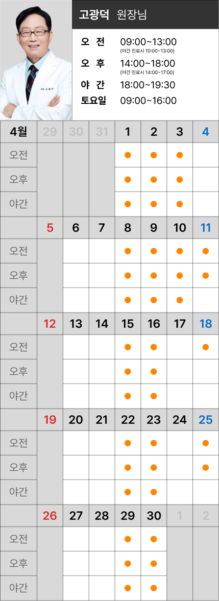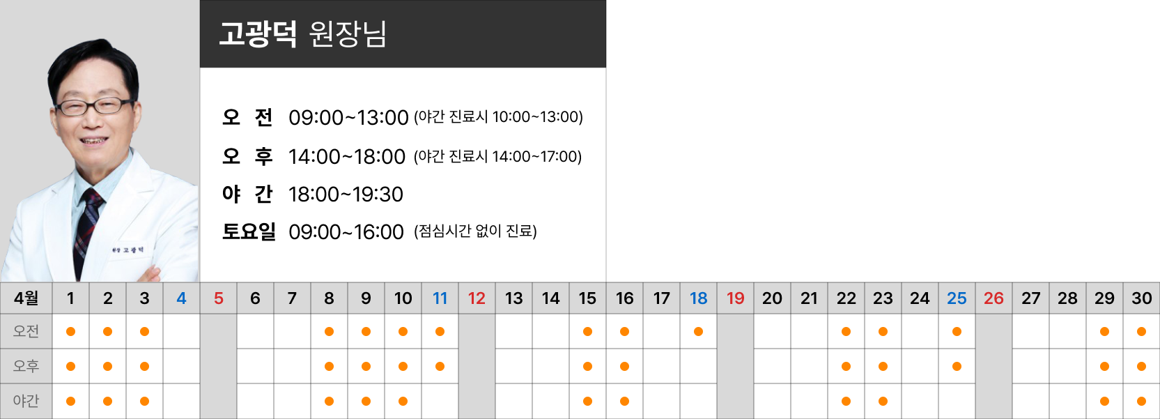 4월 25일 토요일 : 점심시간 없이 오후 2시까지 진료