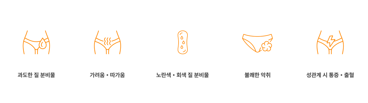면역력이 떨어질 때 발생하기 쉽습니다. 두부 같은 흰 분비물이 특징이며 통증, 가려움, 화끈거림이 나타날 수 있습니다.